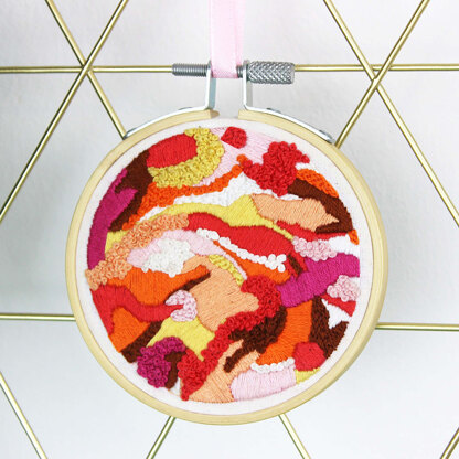 Our ritual embroidery kit is a simple beginners project that is designed to gently guide you through 3 basic embroidery stitches, and build your confidence with this craft. Watch your embroidery artwork grow bit by bit, and you will see the reward of giving yourself a few mindful moments every day. Designed and hand packaged in our cozy studio space in England. It comes with full color photo instructions, and the amazing thing about this kit is that the abstract design comes pre-printed onto the fabric so no need for tracing! Our kits are not designed for children. They are suitable to be stitched by ages 14+ with adult supervision as they contain a sharp needle.