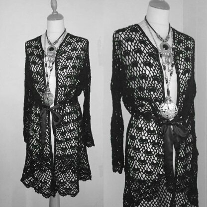 The combination of 4ply cotton and the lacy crocheted stitches result in an elegant cardigan perfect for any occassion. Cardigan can be crochted with long or short sleeves.