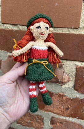 Welcome to my little knitting pattern for Ellie the adorable elf. She is complete with her pointy little ears, stripy tights and cute little elf hat.