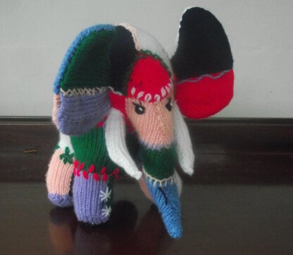 This adorable patchwork Elephant is knitted with oddments of DK yarn, 7 colours using approx 20g each OR it could be made all in 1 colour.. The elephant has been knitted on size 3.00mm needles as I prefer a tighter knit when stuffing but could be made using either 3.50 or 4mm needles which would make it a bit bigger. Height approx 9" (23cms) from feet to head.