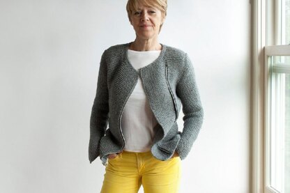 SKILLS REQUIREDLong-tail CO, Cable CO or Knitted CO, decreasing (k2tog), increasing (kfb), Kitchener stitch grafting at shoulders, short row shaping, setting in sleeve caps, seaming, stitch pick-up for neckline trim, and zipper installation.