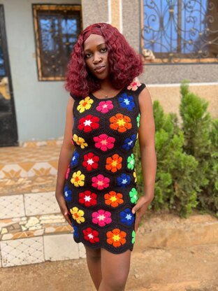 Designed with vibrant African Flower motifs and elegant shaping, the Elsie Petal Radiance Dress is a stunning project for crocheters who love floral patterns, color play, and wearable art.