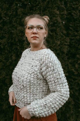The Ember Raglan is a top-down cropped crochet sweater designed with a cozy crew neckline, relaxed fit cuffed sleeves, and a foldable wide bottom ribbing that are made to stand the test of time. Create a modern jumper with a truly captivating vintage style that pays homage to the delicate heirloom sweaters passed down for generations. The classic raglan fit compliments all body types with a graceful positive ease for a glittering silhouette. Whether you are dressing up for date night, girl’s night, or want a homey sweater to wear while doing tedious errands this jumper is a true testament to its craft in being able to elevate any style for all occasions.