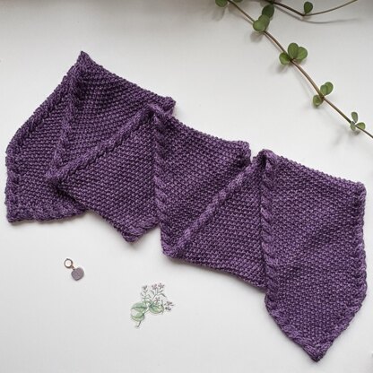 An entirely reversable scarf, including cables that twist around the edge to make an interesting twisted selvedge. The body of the scarf is knitted in moss stitch/seed stitch. The repeating pattern makes for a straightforward project that can be made as long as you wish. Both written and charted instructions available.