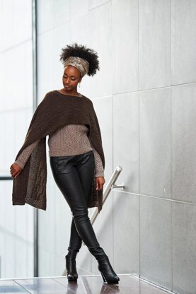 Emika – beautiful bloom in Japanese - is a cape adorned with cables divided in two by a ribbed neckband. Knitted in one piece with shaping for the neck and tidy double knitted edges to make it hang straight. Wear it as you like; hanging loose across your shoulders as a cape or hanging down along your body as a poncho or thrown across one shoulder like a shawl. Emika is knitted in the soft Norwegian lambswool yarn Sol from Hillesvåg Ullvarefabrikk and can be worn as a set over the Maimi pullover.