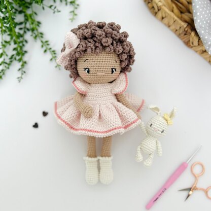This gorgeous amigurumi pattern of Emilie and her little companion, Socks, are a delight to crochet. The pattern includes all the instructions you need to make Emilie, dress and little bunny. It is bursting with lots of detailed step by step images to guide you through, making her a dream to create. Emilie is a perfect crochet doll to make as a handmade gift for girls or a crochet loving friend! She will have everyone falling in love from the very first sight!