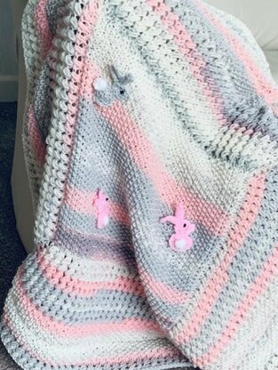 *ENCHANTED* baby blanket knitting pattern is made by knitting a centre square and picking up stitches to knit each side one at a time. Nothing difficult. All the stitches are clearly written and explained . There are photos for added guidance if needed. It uses approx 400gms of baby aran yarn on 6mm needles. The super easy little knitted bunnies are included too. Overall size is approx 32x32ins/82x82cms. If you prefer, it can be knitted in DK yarn on 5mm needles but will be slightly smaller and use less yarn. This pattern is in English and available as a pdf ONLY for instant download worldwide. No charts and no translation is available.
