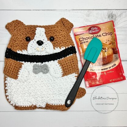 The crochet Bulldog Pot Holder is the perfect gift for dog lovers! This crochet pot holder has a pocket on the front for adding little gifts like cookie mix, spatulas, and recipe cards.
