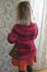Worked in one piece from the top down, started at end of hood. Granny triangles are inserted as you go for clever shaping.