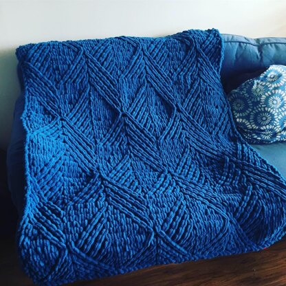 THIS IS A LOOP YARN FINGER-KNITTING PATTERN. The Escherian Geometric Blanket Pattern is an asymmetrical mix of intersecting planes. The stitches in this design are not complicated, but it definitely requires focus and care to achieve an accurate and consistent look! If you love geometric patterns and are looking for a challenge, this is the pattern for you! NOTE: While this pattern is written for Alize Puffy yarn, UK knitters can substitute Bernat Alize Blanket-EZ yarn for a blanket of approximately the same size - you will only need 5 skeins.