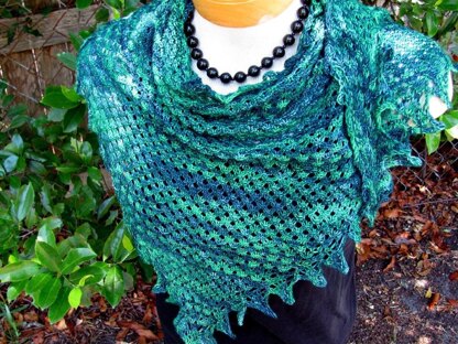 A bottom up shawlette worked up in a lovely hand-dyed sock weight yarn from The Knit Witch. The edging of this shawlette is worked up along the sides as you knit. There is short-row shaping to help it sit on your shoulders and a picot bind-off for a fancy edging. The short-row shaping instructions are written only.