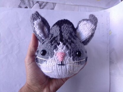 This is a PDF knitting pattern, not a finished doll. Cat Head is written in English and Spanish. The pattern does not include body pattern. This pattern is an extensive PDF file containing complete instructions for knitting and finishing a cat head