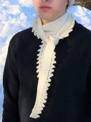 This scarf is worked from side to with a lace edge and an I-cord edge.
