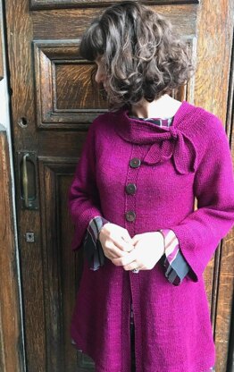 Evening in Edinburgh is the third pattern in the “Packing for Edinburgh” set and is a swing coat knit up in a statement color, which goes from lunch to museum, from pub to dinner. It is knit from the top down and you may do this back and forth (Suckers! Why aren’t you steeking?!) or in the round with a steek at the end that takes about 15 minutes. They are separate files.
