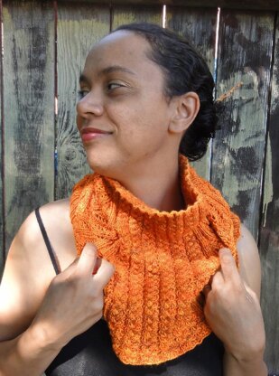 In The Hunger Games Series by Suzanne Collins, Katniss learned her archery skills from her bow making father as a young girl. The family Everdeen is the inspiration for this cowl, an irresistible combination of sturdy cabling and lush winter lace designed to look like the featured shaft of an arrow. Worked in DK weight yarn, this cowl is a quick knit that will keep you warm in the chill evenings of Autumn into the frosty mornings of Spring.