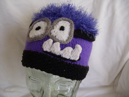 This funky Evil Minion inspired hat is a must for any minion lovers. This pattern has three sizes which should fit most of the heads. Fits heads of 16”- 22” (41 - 56cm). Finished measurement approximately 16” (41cm) small, 19” (48cm) medium, and 22” (56cm) large in circumference unstretched. Approximately 1 ball each of medium worsted yarn in purple (I used Caron Simply Soft Grape # 9610 ) and black yarn, 1 ball of Fun Fur or other novelty type of yarn in color matching the body of the minion (optional) for hair, remnants of white, black and grey colored yarn.