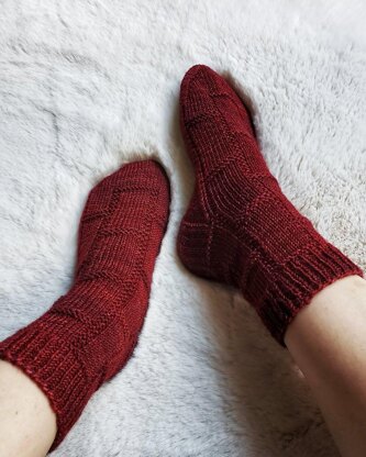The Exposed Brick Socks pattern is a basic sock pattern with a cool brick style pattern down the body of the socks. The socks are knit cuff down, with a heel flap and gusset, and a wedge toe decrease. I used the soft, squishy Knitpicks Hawthorne Fingering. You can use any other fingering weight yarn you can achieve gauge with though!