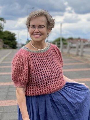 The Eyelet Saddle Shoulder Sweater features super easy eyelet stitch pattern. The saddle shoulders and short puff sleeves add extra charm. It is an attractive knit and a perfect project for anyone looking to learn knitting seamless in the round from top down. The sleeves are also worked in the round down. You can knit the body and sleeves to your required length.