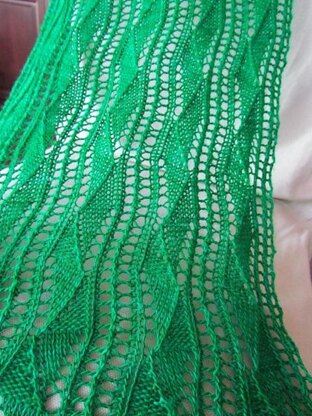 Faceted Lace Wrap and Scarf is a linear design of inverted triangles giving the pattern movement divided by a lacy column. The model is a medium width or 5 repeats, (a wide scarf or narrow wrap) however this pattern can be easily knit narrower or wider depending on your preference; additional widths are included in the pattern. Any yarn weight can be used by adjusting needle size accordingly. Pattern is written for fingering or lace weight, but any weight can be used, by adjusting needle size accordingly..