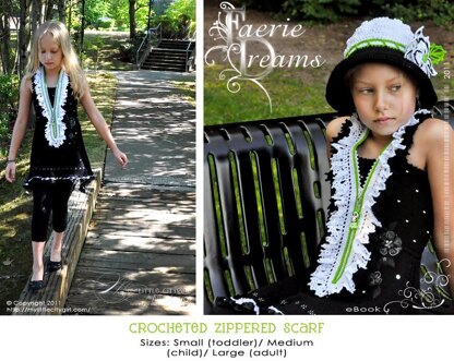 Double tiers of crochet lace make up the zip scarf, which flutters softly about the neck and shoulders to echo the hem of the dress. The ruffle pattern is also a unique highlight for the everyday wardrobe, and can easily be adapted into an edging for everything from sleeves to boot cuffs!