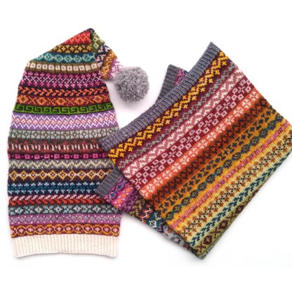 Fair Isle Advent MKALendar comes in four sizes for the stocking cap or beanie (kids, teens, ladies, and gents) and one for the cowl. Length is adjustable within pattern.