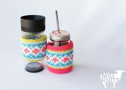 This pattern includes instructions to create the pint jar cozy, the plastic lid insert, and the coffee cup sleeve. The pint jar cozy can be used as a free standing vessel to hold pencils, crochet hooks, and other assorted tools; as a planter cozy to dress up a small plant pot; or it can be combined with a pint size canning jar, the lid insert, and a straw to make an amazingly convenient travel cup. These written instructions, for two styles of cozy, include color charts and photos for pattern clarification making it an easy to follow how-to.