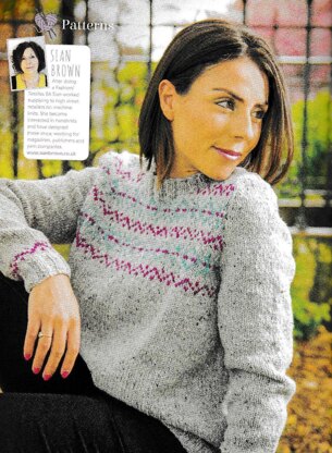 This is a pattern for a Fairisle Yoke Jumper, originally published in The Winter Knitting bookazine by Future Publishers. It is in stocking stitch with a fairisle yoke on the front and back, rib edges. Photos Future Publishing.