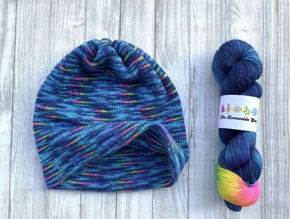A versatile double layer hat that can be worn slouchy or pulled snug with the brim folded up. Knit using a unique construction, it is the ultimate mindless knit until the last few rounds when you must focus a bit to turn all that stockinette into an actual hat.