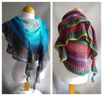 Size of each section and finished shawl can be adjusted to your tastes. Amount of yarn required may need to be adjusted also.