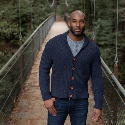 Fall Creek is a classic shawl-collared cardigan with a modern twist. The fronts feature subtly graphic diagonal lines made of up of traveling stitches that neatly meet at the base of the shaped neckline. With set-in sleeves, allover ribbed texture, tailored shoulders, and a cozy shawl collar, Fall Creek looks great on wearers of any gender.