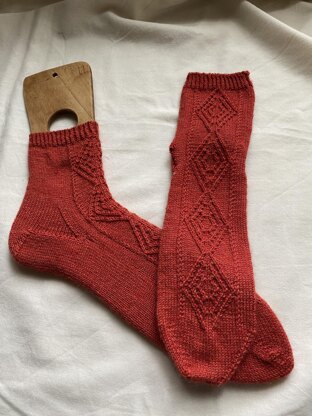 These socks, inspired by fall festivals, ask to be worn on days without any particular agenda, days that can be enjoyed unhurriedly. Wear them on a weekend getaway with friends, while writing a poem, or while out on a meandering walk in your favorite park – any kind of restful and unrushed moment will do.