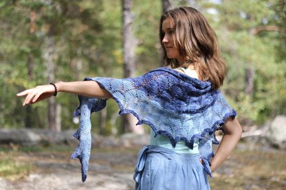 This elegant shawl is a great addition to your autumn wardrobe and shows off your kettle dyed yarns and yarns with long colour changes perfectly. The lacy edging is a great finish for these falling leaves. You can knit this shawl in any size and any yarn quality.