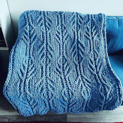THIS IS A LOOP YARN FINGER-KNITTING PATTERN. The Falling Leaves Blanket pattern knit, purl and criss-cross stitches to create an abstract pattern of leaves. This pattern is vertically symmetrical.