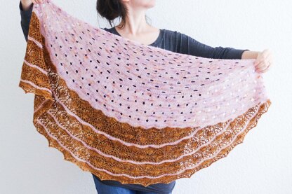 Asymmetrical crescent shawl with a half-pi shaped body and lace short rows.