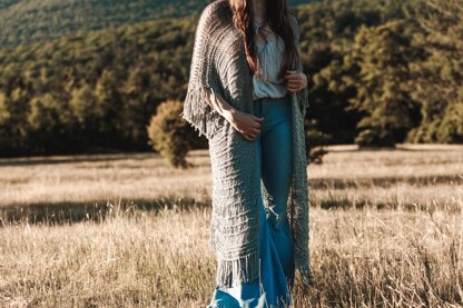 This lightweight, effortless knit compliments casual and more formal ensembles alike with loose, airy fabric accented with delicate cascades of drop stitch. Optional fringe adds a bohemian touch to this quick and easy project.