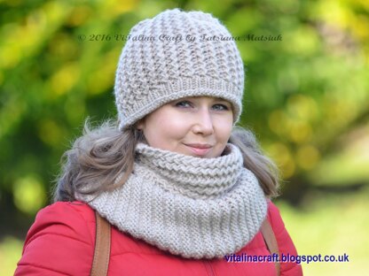 Fancy Twist Hat and Cowl Set is super comfy and stylish pair of accessories for these cold and chilly days. The cowl combines two simple stitches and can be worn in few different ways. Also it is a quick and fancy knitting project. Both hat and cowl are knitted with pretty ribbing stitch back and forth on 8 mm needles.