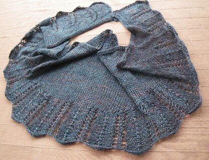 I used Merino/Tencel yarn from Maylin, Tri'coterie but would be suitable for any sock weight yarn. Size approximately at 98 cm wide and 39 cm deep. If you would like a larger size just increase the lace section before starting the stocking stitch or use thicker yarn.