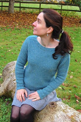 Made top down from the cast on of the integral neck band and totally seamless this is knit in the round with a hybrid saddle shoulder/contiguous construction, short rows to shape the shoulders and neck and a split hem detail.