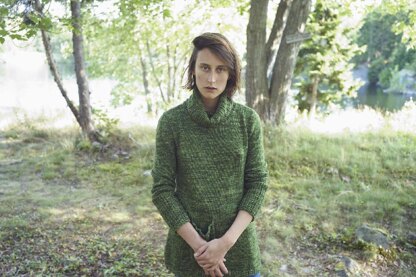 Farfalle is a straightforward knit, and it is among the easiest in the collection. Done in pieces from the bottom-up, the sweater is shaped with simple decrease and increase stitches along the seams. The sleeves are knit separately and set in, the cowl is worked in the round, and the pocket is added in finishing.
