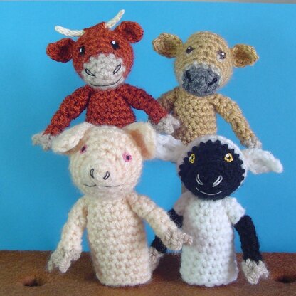 Four favourite farm animals to crochet. Perfect to make education or story telling more fun. All made with DK except the bull's horns for which I used 4 ply cotton but you could use acrylic 4ply or split a length of DK and use 2 strands.
