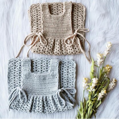 Create this classic look with the Farmhouse Pinafore crochet pattern. The perfect accessory for the coming seasons, pairs beautifully with spring and summer dresses.