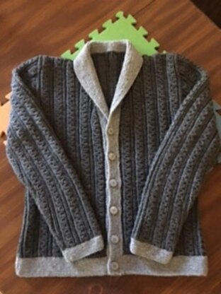 This sweater is knit in pieces and then sewn together before adding a button band and collar. Collar is worked in short rows. There is a cable stitch used to give an added texture. Buttons are needed for the front closure. There is a matching child's pattern called Child's Cable Cardigan.