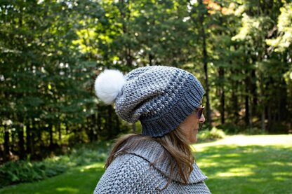 This hat has lots of texture and a nice slouch but if you prefer a beanie, you can dot hat too! I added a faux fur pompom but you can make your own pompom with my easy tutorial or leave it off altogether! , an updated neckline and wonderful drape. This poncho looks great with dress slacks, skirts or jeans, so it is a versatile piece that will be a workhorse in your closet.