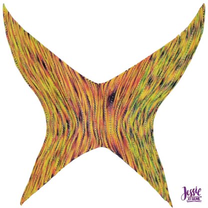 Faylinn's wings are long, pointed, and full of the beautiful fall colors of the Rufous Hummingbird. Create your own with this knit pattern. The wing shape of this shawl adds more ways to wear it then a traditional shaped shawl. The bottom two points can be left to hang, or can also be wrapped around the body. Faylinn even makes a great swimsuit cover up when worn backwards with the top points wrapped around the neck and the bottom points tied behind the back. You could even add wires along the top and bottom curves of the shawl and shape it to be worn as costume wings!