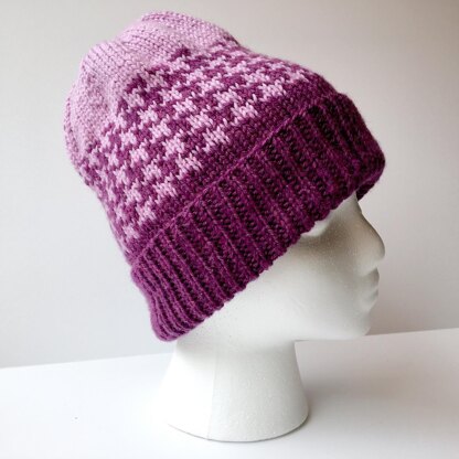 Due to the stitch count of the colorwork repeat, the pattern is written in one size and two gauges are given to achieve either a child size or an adult size hat.