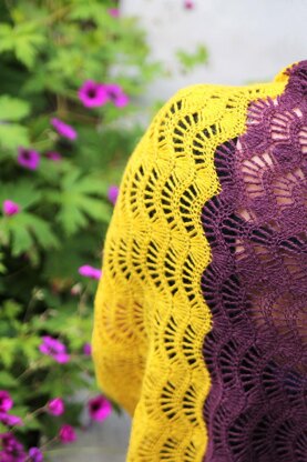 The Feather & Fan shawl is modern twist on the traditional fan pattern. The lacy stitch repeat gives the shawl a great drape, while still keeping you warm during cooler summer evenings.