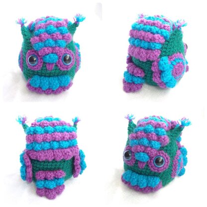 This Feathered Owl Amigurumi pattern can be made with any size yarn to make different sizes. You will need a hook size suited to your yarn size and another half a size or one size smaller to add the feathers. Using DK/light worsted yarn with a 4mm and 3.5mm hook will produce an owl approximately 9cm tall, Chunky/bulky yarn with a 6mm and 5mm hook - approx. 12cm tall. This pattern is written using US terms with a chart included to convert into UK terms. Photographs are used throughout to help with instructions.