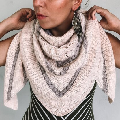 A few months ago I saw a beautiful soft pink yarn at FeatherFin Yarn. Even though I didn’t know yet what I was going to knit from it, I had to have it! It’s not unusual for me to leave some yarns for a while until I feel them. The moment for “Peach” had finally come a few weeks ago and I decided to break the softness of pink with a light grey easily. So the nonchalance, which I like so much when I wear it, also came into the shawl. The lace pattern was then the highlight, which of course should not be missing in any shawl. ;-) “Feeling Peachy” should bring a little more lightness into your life with its mix of simple pattern elements!