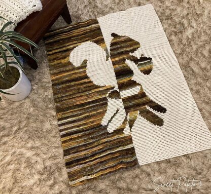 Add a playful touch of the forest to your crochet with the Feeling Squirrelly Blanket Pattern! This whimsical woodland throw features a charming squirrel perched on a tree stump, holding an acorn, all designed in a bold split-silhouette style. Perfect for nature lovers, woodland nurseries, or cozy rustic décor, this blanket combines modern design with woodland magic.