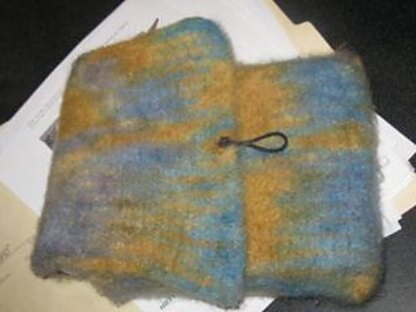 Any thick bulky weight yarn, 100% wool, will work. I created this easy pattern for making a cushy pouch for the kindle that a guy can use.